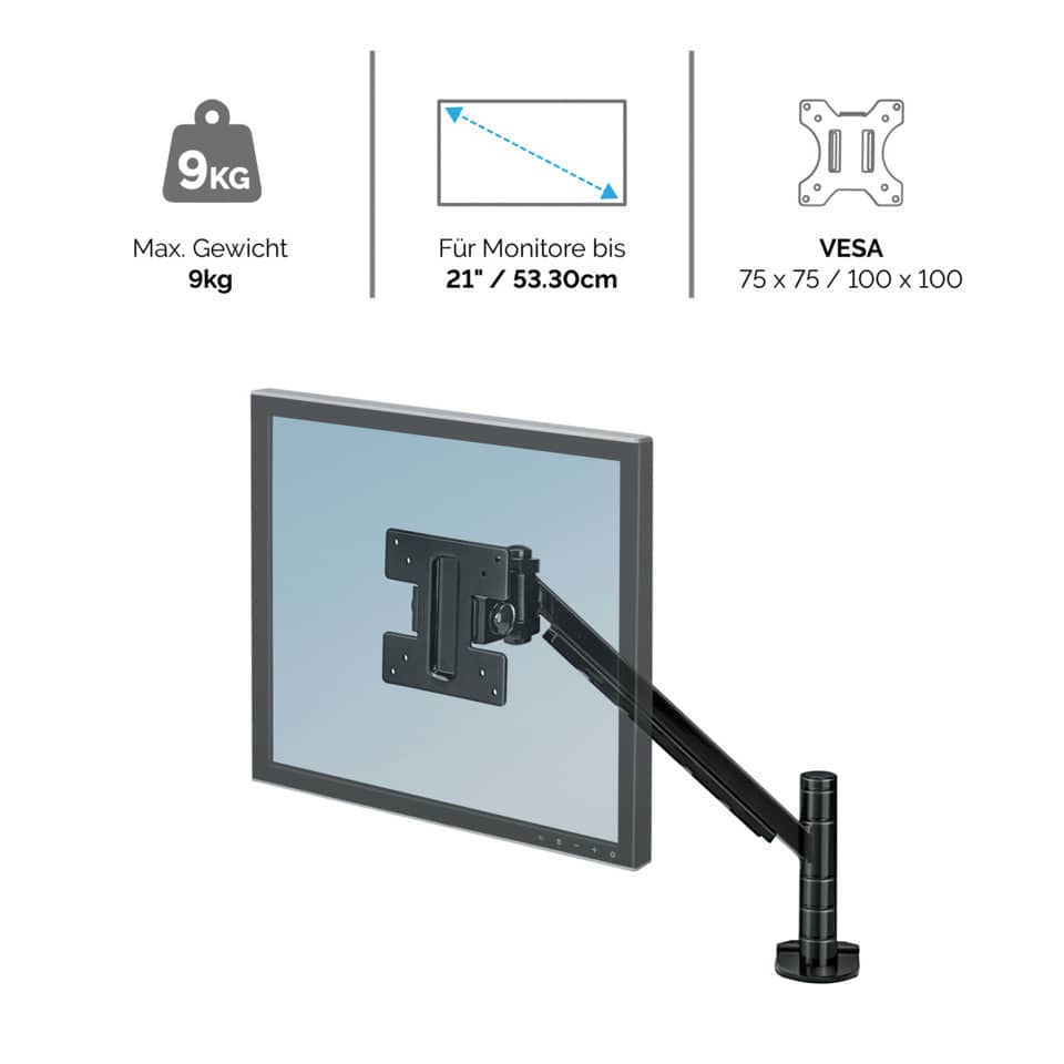 Braccio Monitor Singolo per regolare monitor LCD/TFT Fellowes Smart Suites nero max 21 pollici - 8038201
