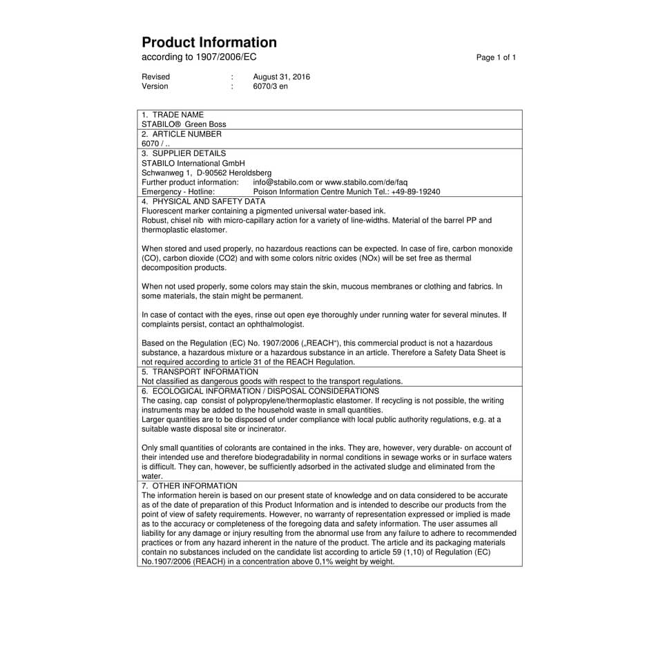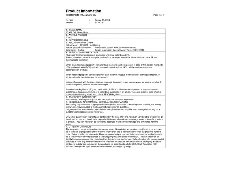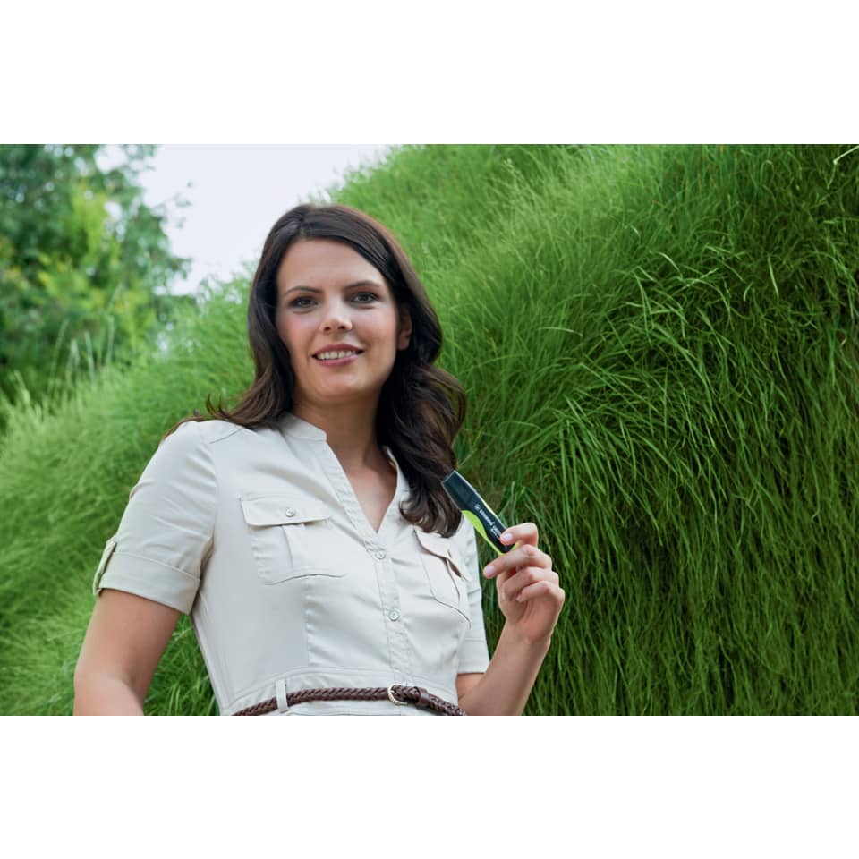 Evidenziatore a tampone realizzato con l'83% di plastica riciclata. Con la tecnologia STABILO Anti-Dry-Out resiste fino a 4 ore senza cappuccio. Doppia ampiezza tratto 2+5 mm.